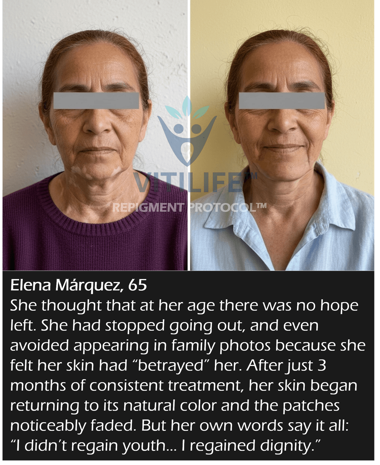 The RePigment Protocol™ was created after years of research and the validation of thousands of real cases, successfully awakening dormant melanocytes and restoring pigment naturally.
